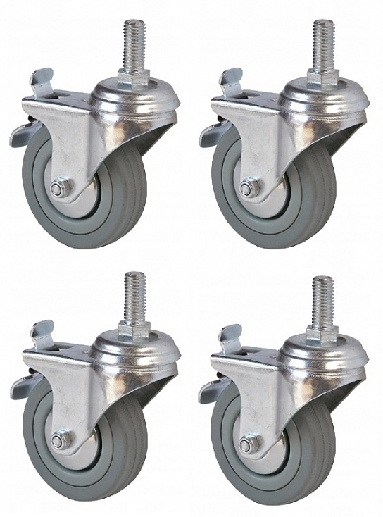 4 x Koło skrętne z hamulcem 50 mm 25 kg Niebrudzące Cynkowane Ciche na Srubę